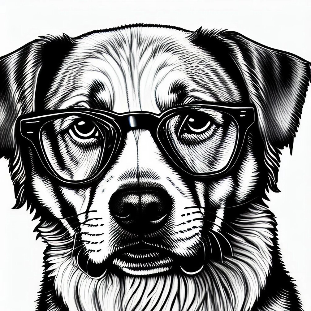 In this creation, the simplicity of black and white meets the unique expression of a dog, capturing its essence in each stroke. Contrasting tones add a touch of sophistication, while the artistic rendering evokes the gentleness and faithfulness of canine companions. The glasses he wears give him the touch of intellectuality!